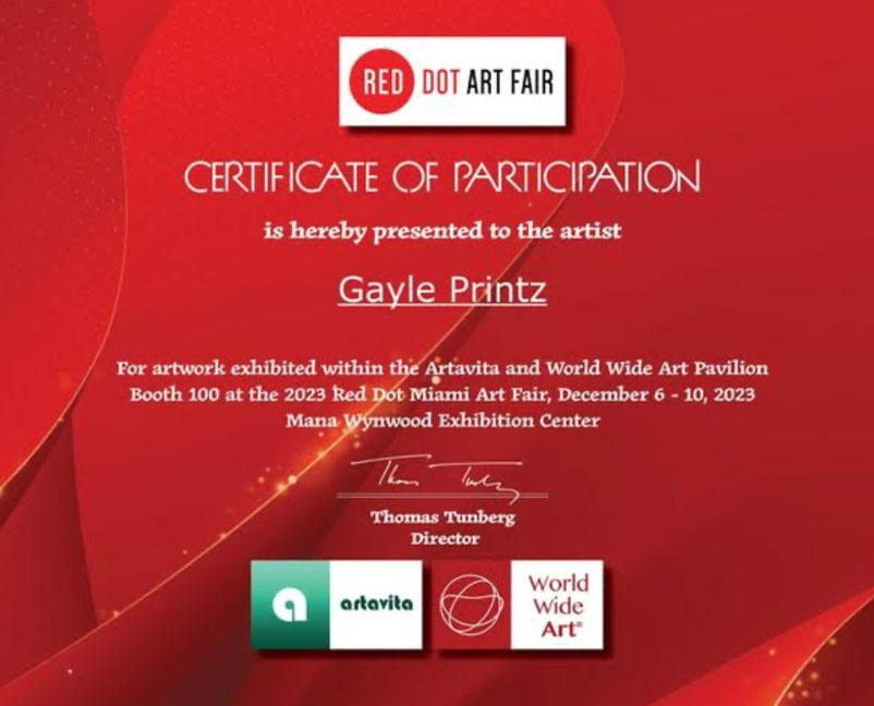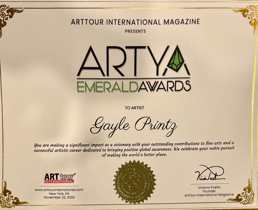 - “GAYLE PRINTZ, A WORLD MASTER ARTIST: Investable Contemporary Artists For ART MARKET Art Collectors:” A Critical Art Review by Art Market Experts of Hong Kong, Special Administrative Region of the People’s Republic of China