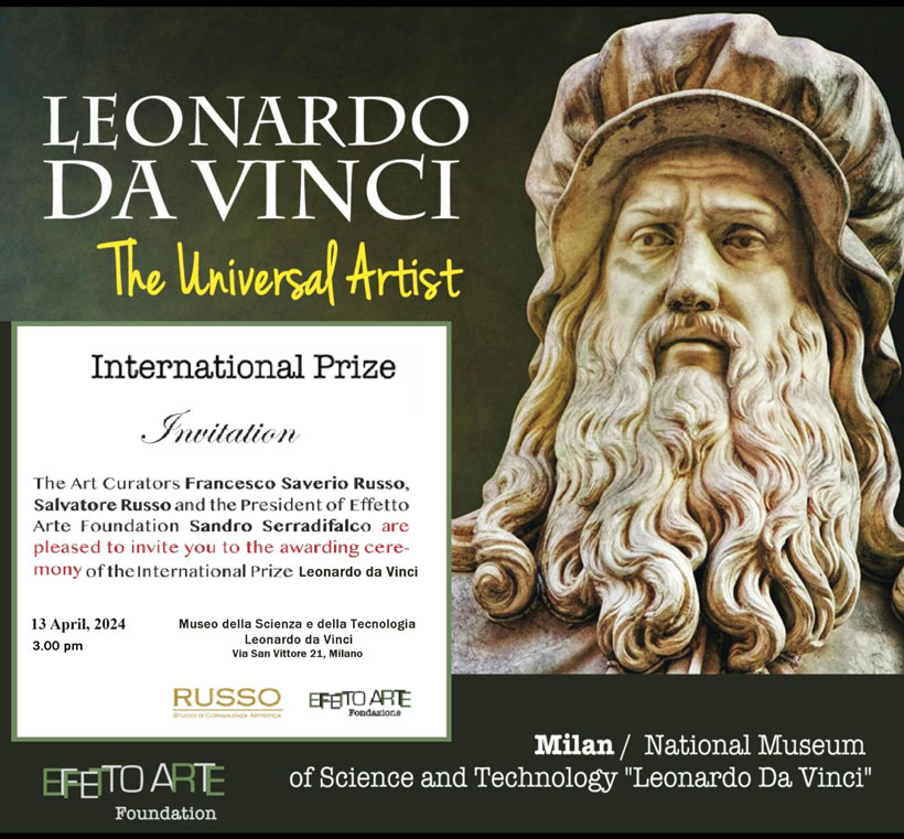 - THE SEVENTH INTERNATIONAL PRIZE LEONARDO DA VINCI: Conferred by Fondazione Effetto Arte in collaboration with Russo Studio di Consuelenza Artistica of Palermo, Italy at Museo della Scienza e della Tecnologia Leonardo da Vinci, Milan, Italy, June 7, 2025