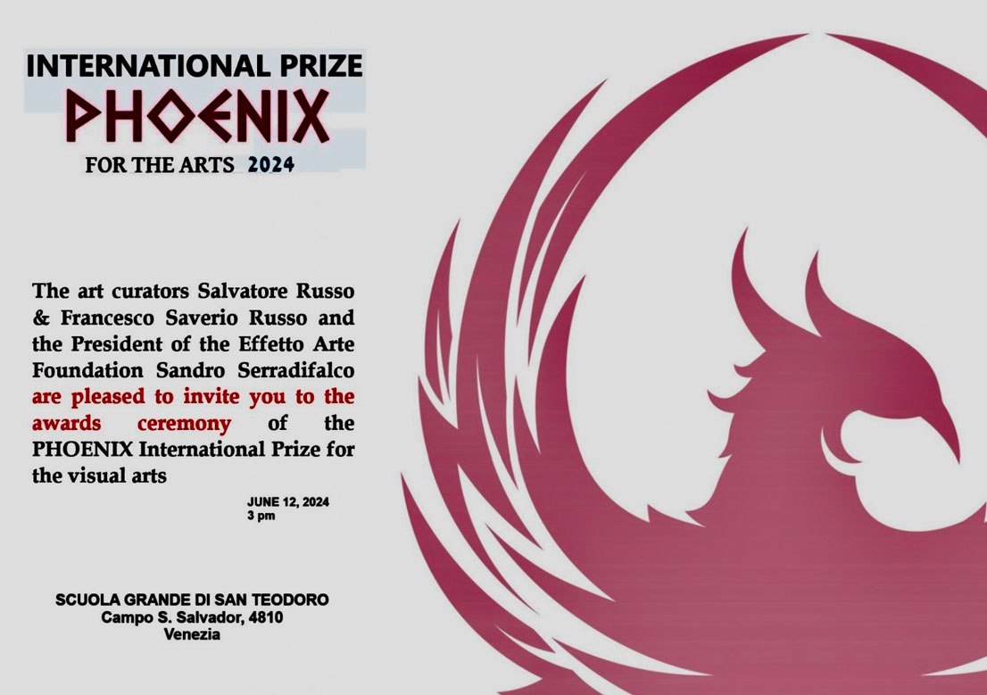 - THE INTERNATIONAL PRIZE SEGNALATI: Conferred by Fondazione Effetto Arte in Collaboration with Russo Studio di Consuelenza Artistica, Palermo, Italy